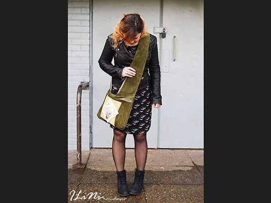 Chamomile on a olive green bag - OOAK handmade leather handbag with silk embroidery